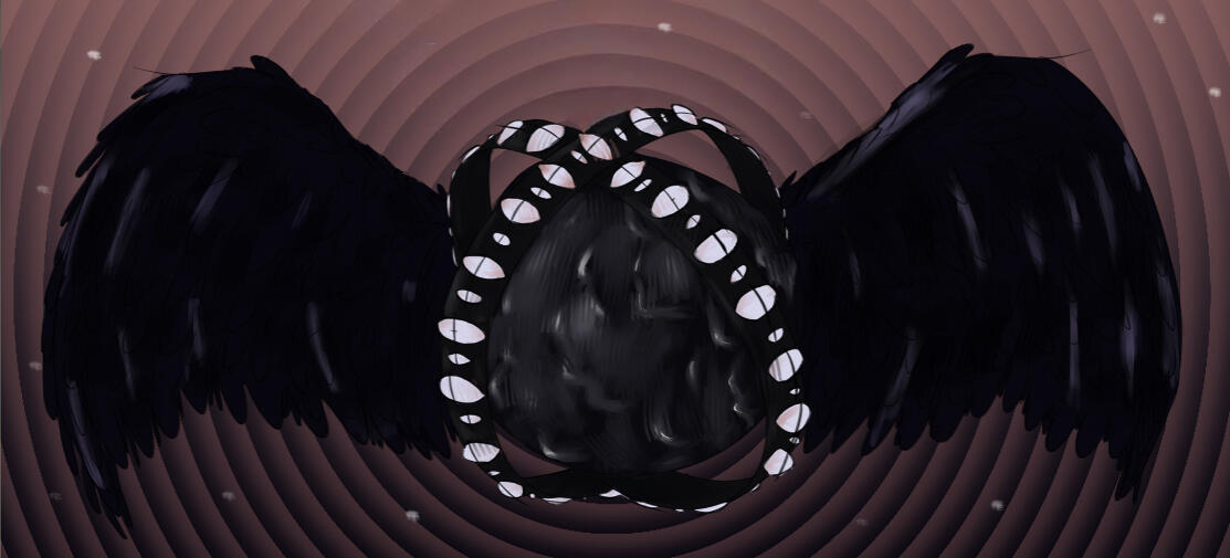 Entity-603 is a Fourth Dimensional being with very little power over its own. Being one of the lowest levels of a Fourth Dimensional Being, its ability comparable to an Earth Maggot. Even so, its size is comparable to planets. Dozens of eyes surround its obsidian laced muscle sphere, tattering the metal wings. It has no means of communication, as can only glide around using its pitch black wings.