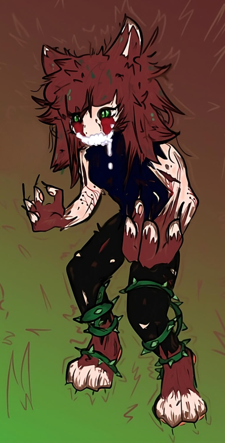 turn into the same green rock he protected, and his fur would lose it's color: leaving only patchy red blots.